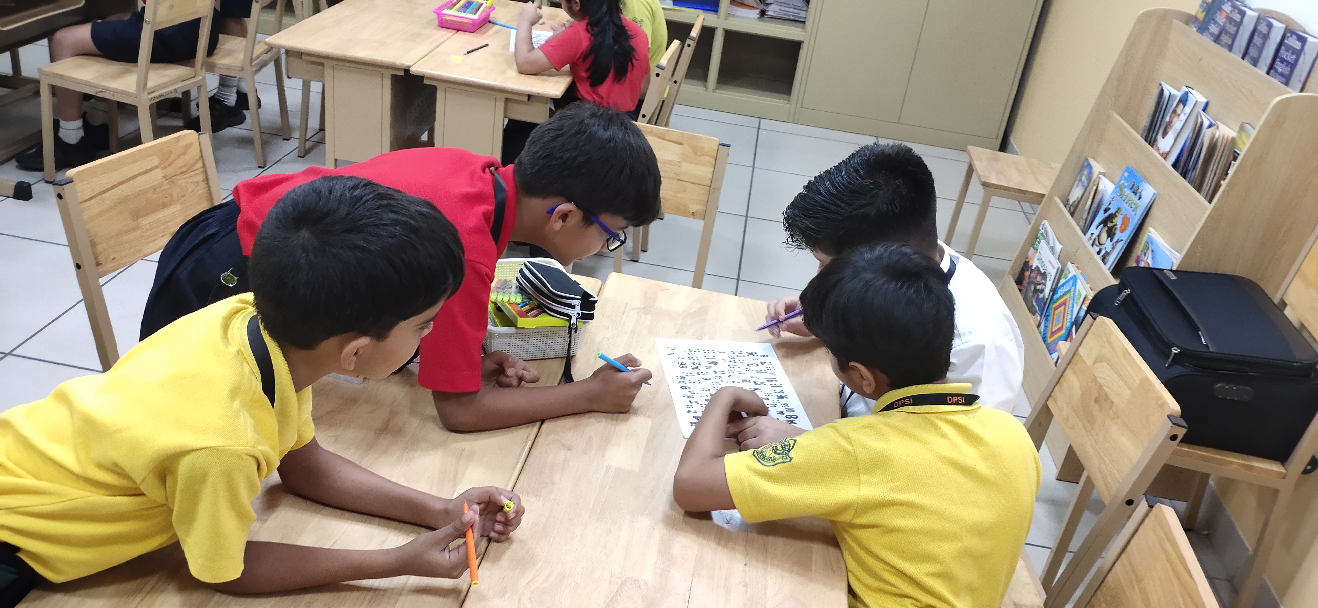 Students developed group work skills by participating in an interesting group task ‘100 numbers to get students talking’ wherein they sat in groups of 4 and had to find and circle numbers from 1-100, while taking  turns to discover patterns in numbers.
