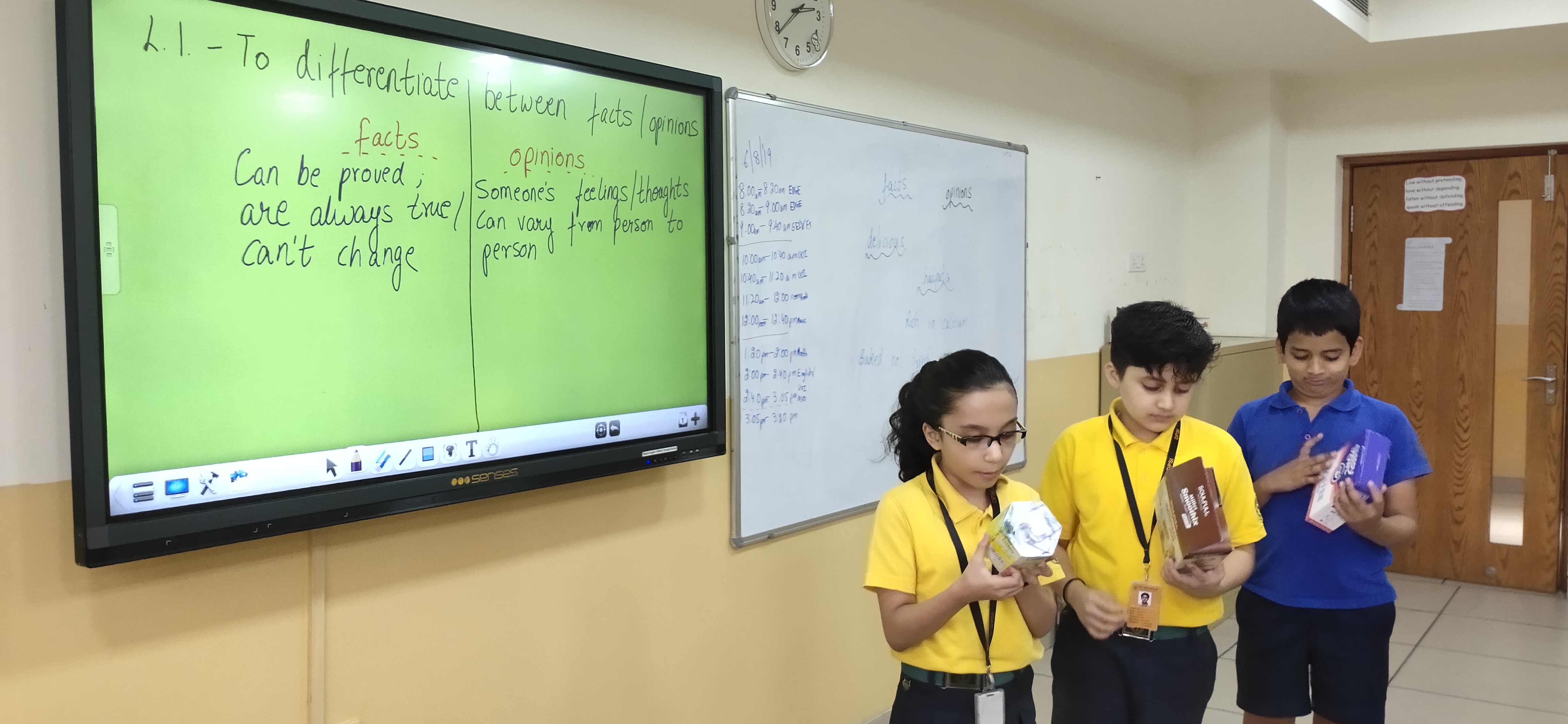 During English classes, prior knowledge on the use of punctuation was assessed. Learners were introduced to degrees of comparison. The learning from the unit on media was integrated with the English lessons wherein students watched two commercials and analysed how they were used to persuade the viewer towards making a choice. This was followed by a discussion on persuasive writing. Unit of inquiry was furthered understanding when students learned to differentiate between facts and opinions seen in advertisements.